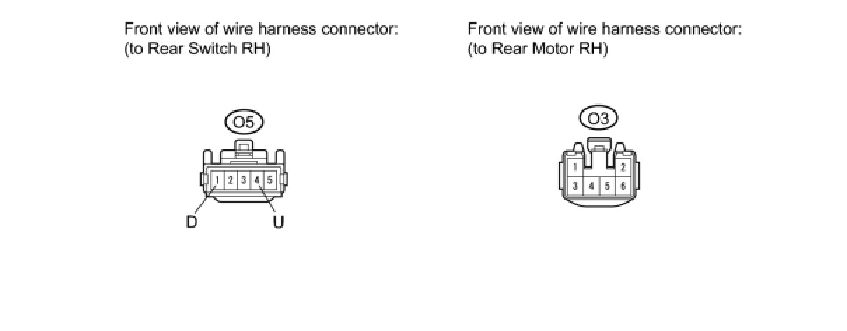 * If the rear RH side manual UP/DOWN function does not operate, there may be a malfunction in the rear switch RH, rear motor RH, master switch or harness and connector.