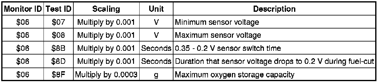 The purpose of the monitor result (mode 06) is to allow access to the results of on-board diagnostic monitoring tests of specific components/systems that are not continuously monitored. Examples are catalysts, evaporative emissions (EVAP) and thermostats.