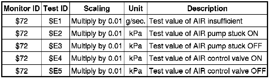 If you use a generic scan tool, multiply the test value by the scaling value listed below.
