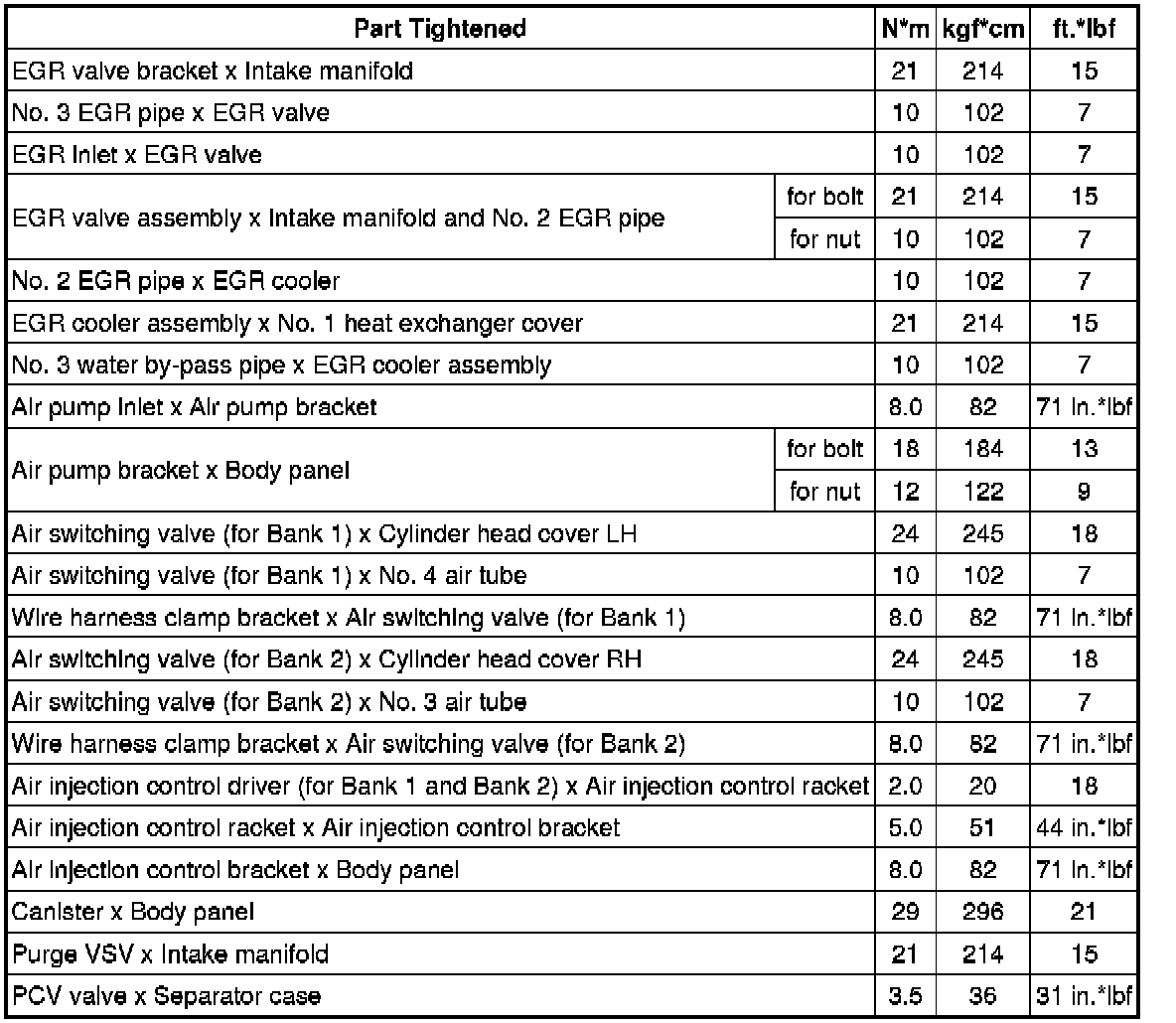 SERVICE SPECIFICATIONS: 1UR-FE EMISSION CONTROL: TORQUE SPECIFICATIONS