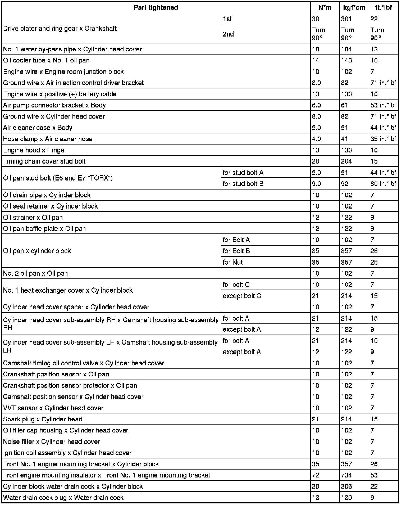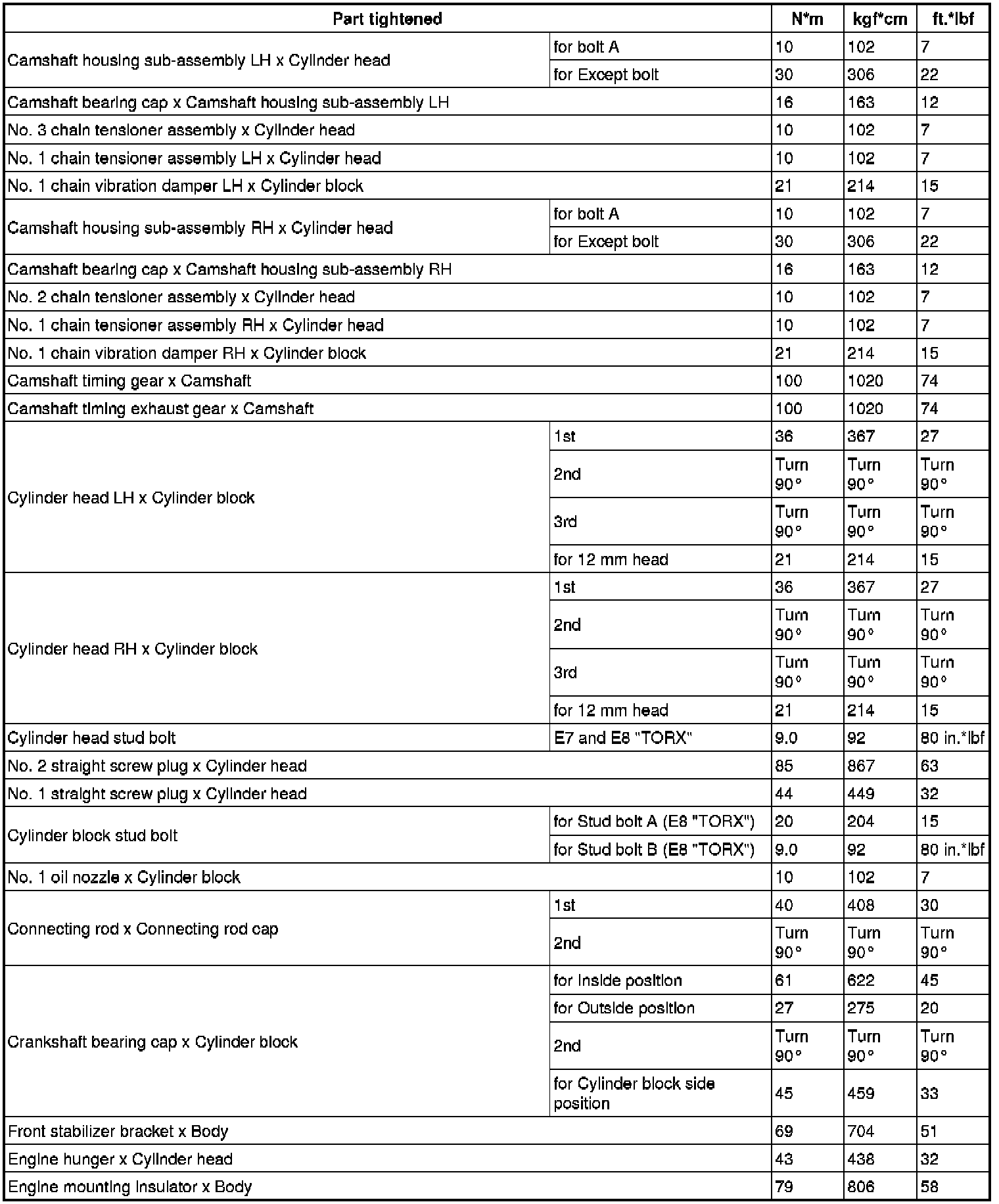 SERVICE SPECIFICATIONS: 1UR-FE ENGINE MECHANICAL: TORQUE SPECIFICATIONS