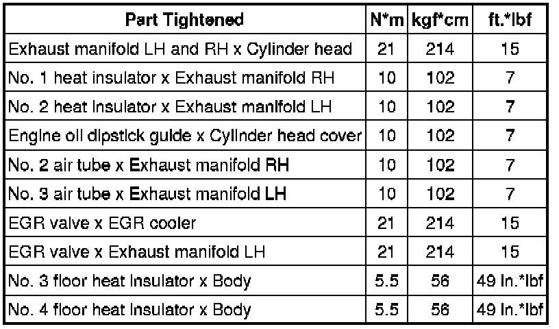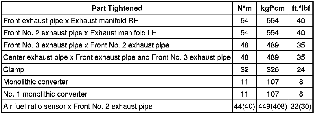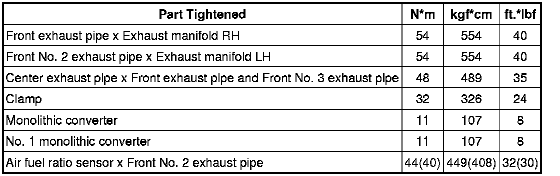 SERVICE SPECIFICATIONS: 1UR-FE EXHAUST: TORQUE SPECIFICATIONS