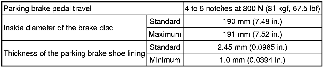SPECIFICATIONS: PARKING BRAKE: SERVICE DATA