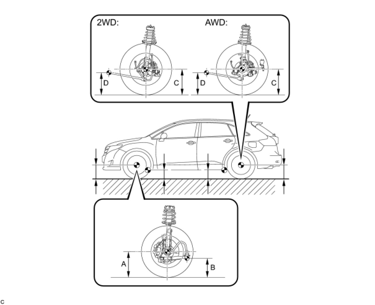 * Before inspecting the wheel alignment, adjust the vehicle height to the specified value.