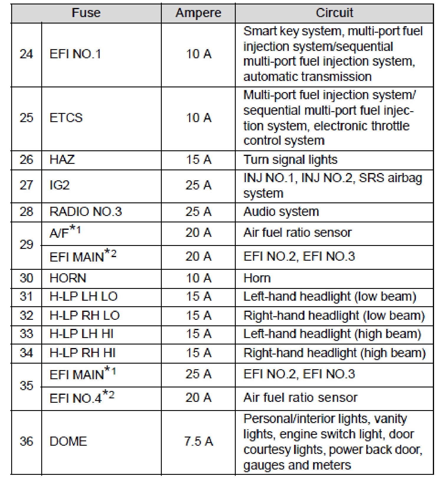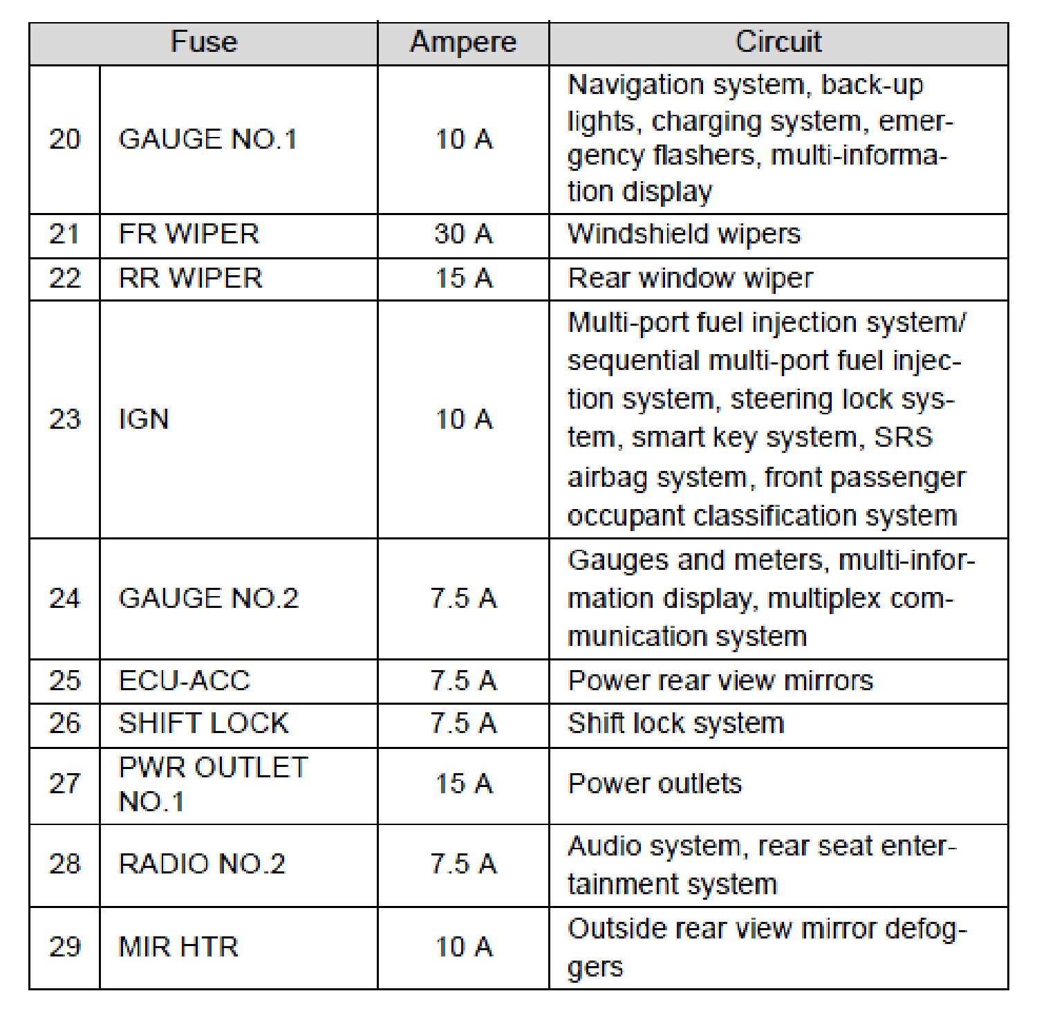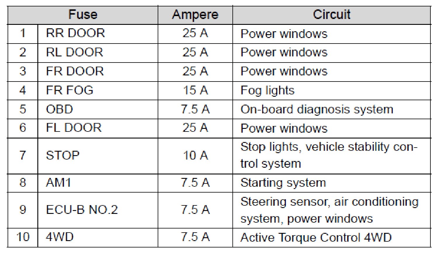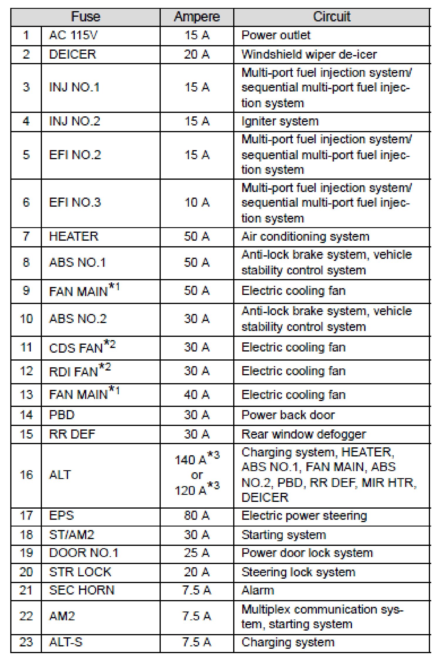 Fuse Layout and Amperage Ratings