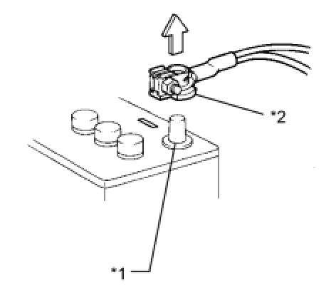 * When disconnecting and reconnecting the cable of the negative (-) battery terminal, the cowl top ventilator louver must also be removed and installed. Be sure to install the cowl top ventilator louver properly. If it is not installed properly, water may enter the engine compartment and cause malfunctions.