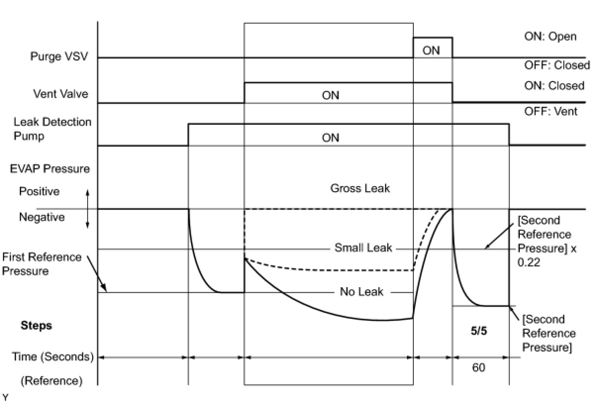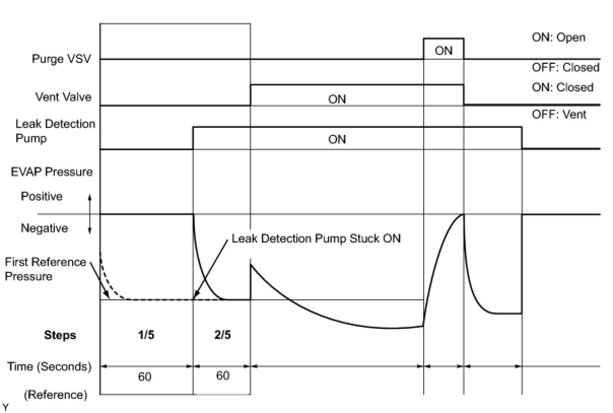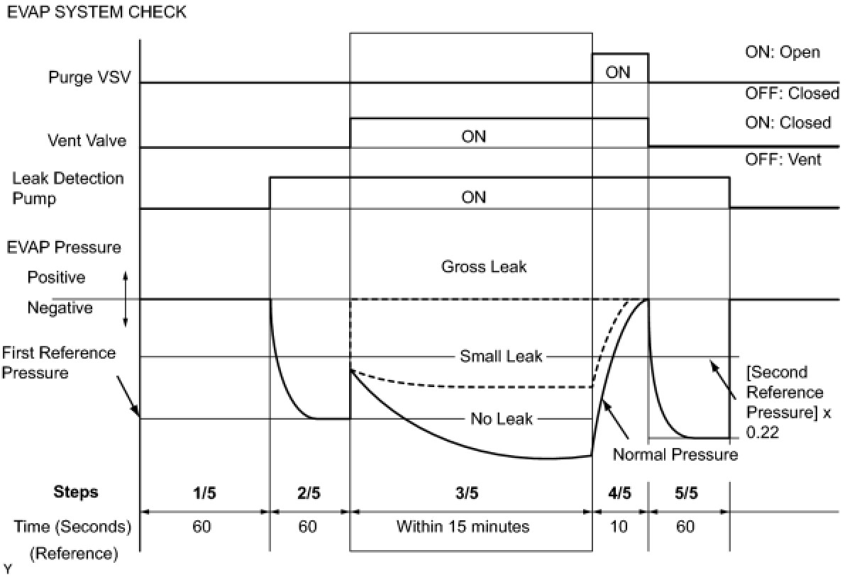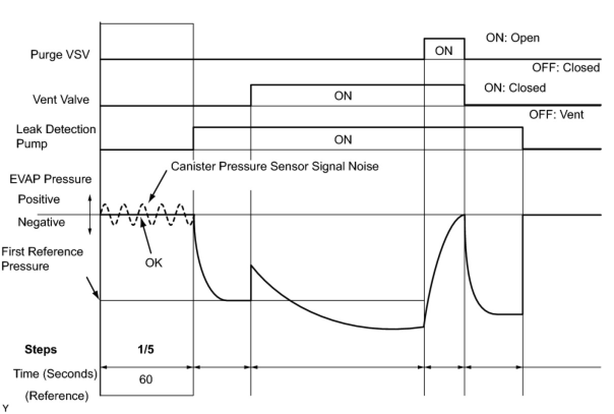 (b) Compare the EVAP pressure in step 3/5 and the second reference pressure (step 5/5).