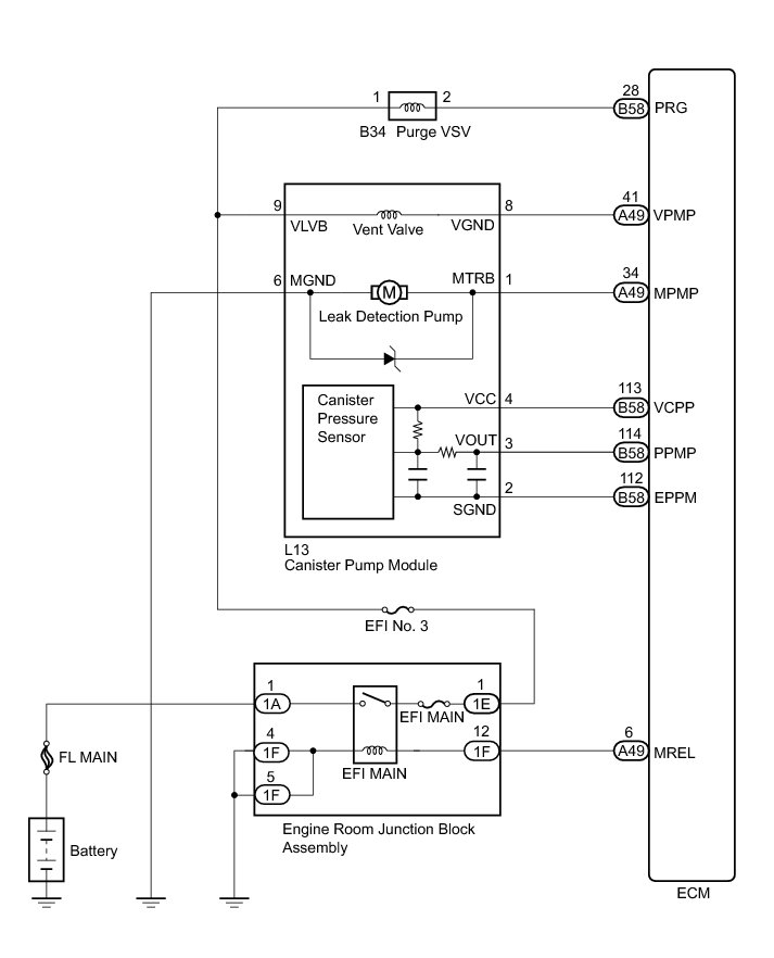 B -- INSPECT CANISTER PUMP MODULE (POWER SOURCE FOR VENT VALVE)