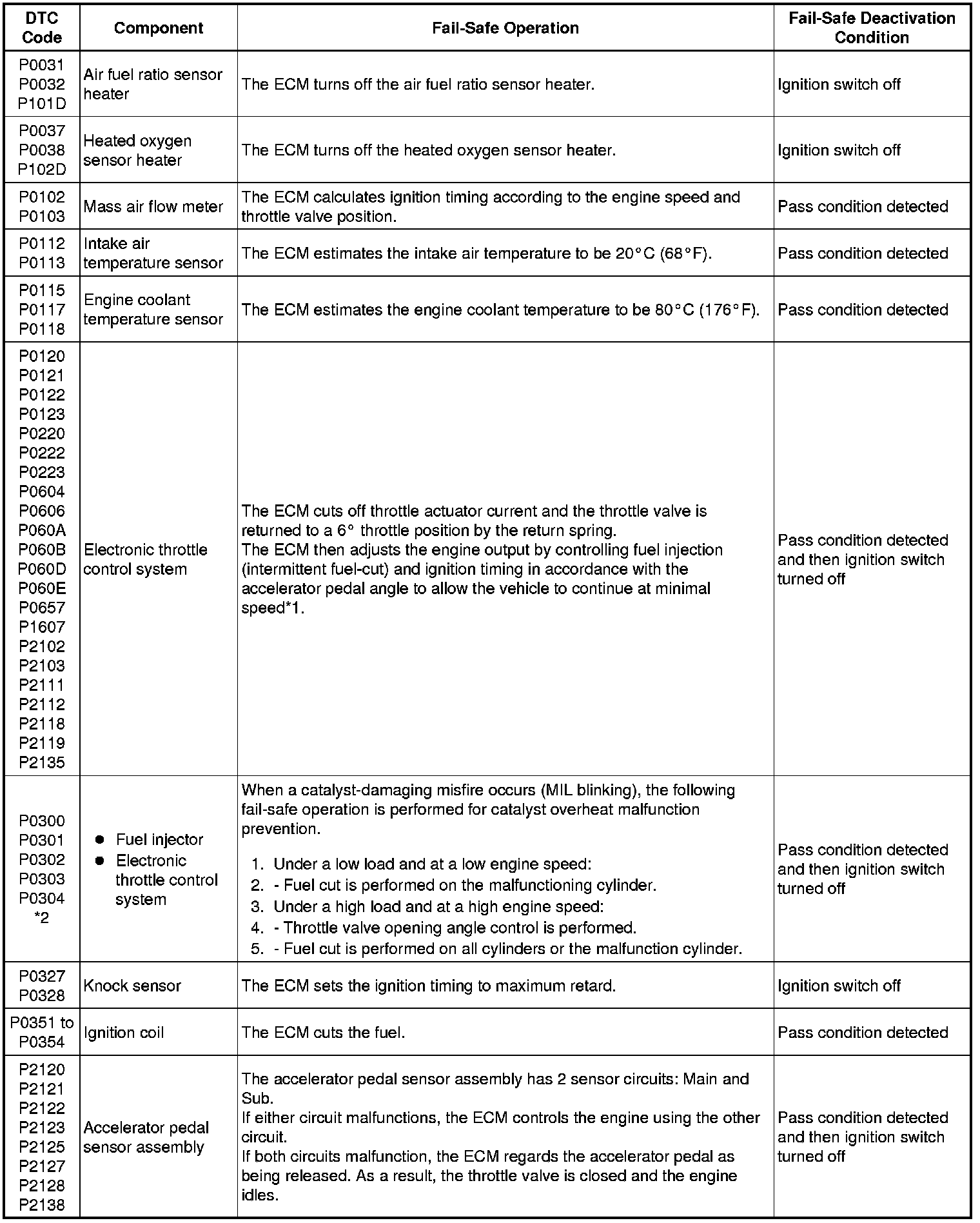 * *2: Misfire-related fail-safe operations occur when catalyst overheat malfunctions occur.