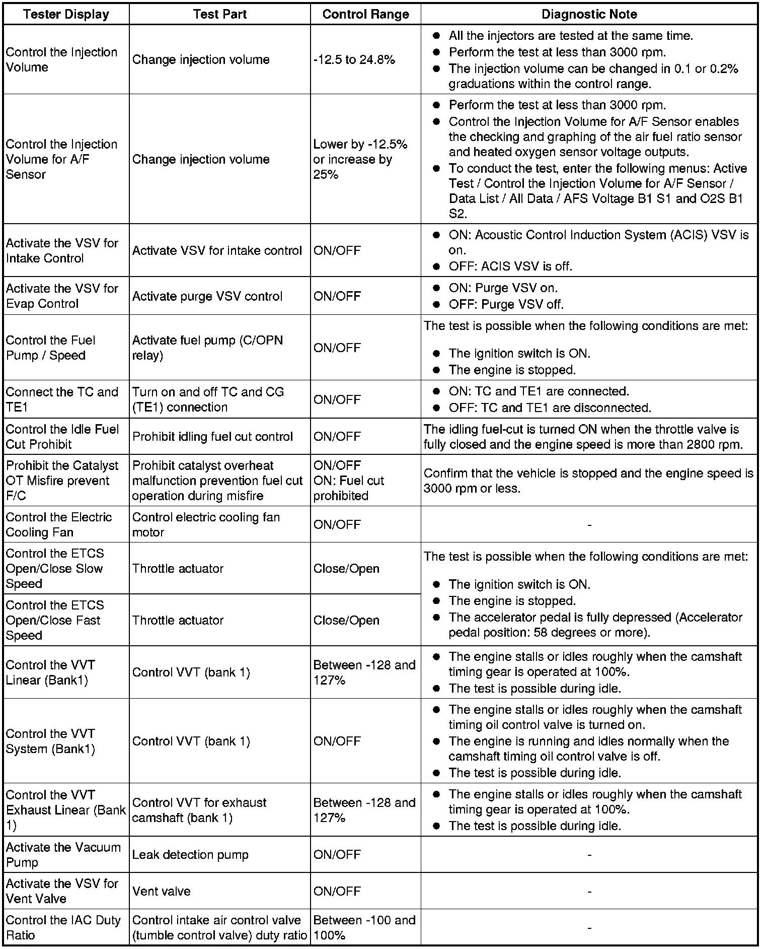 Using the Techstream to perform Active Tests allows relays, VSVs, actuators and other items to be operated without removing any parts. This non-intrusive functional inspection can be very useful because intermittent operation may be discovered before parts or wiring is disturbed. Performing Active Tests early in troubleshooting is one way to save diagnostic time. Data List information can be displayed while performing Active Tests.
