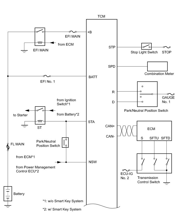 (a) The Electronic Controlled Automatic Transaxle (ECT) is an automatic transaxle that has its shift timing electronically controlled by the Transmission Control Module (TCM). The TCM detects electrical signals that indicate engine and driving conditions, and controls the shift point, based on driver's habits and road conditions. As a result, fuel efficiency and transaxle performance are improved.