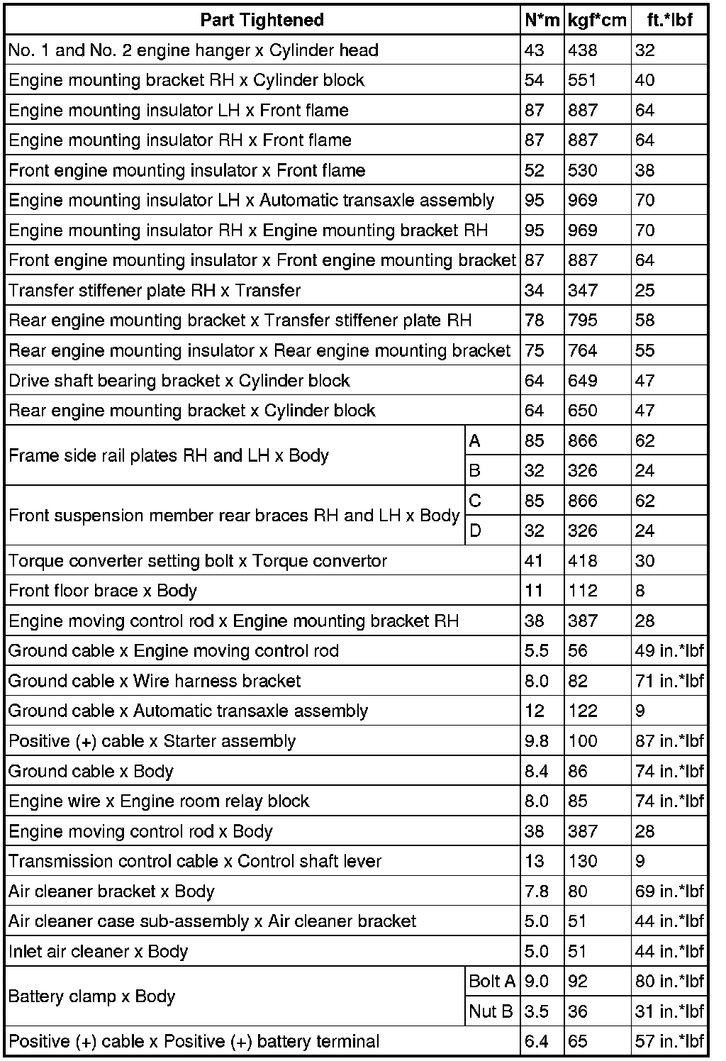 SPECIFICATIONS: 1AR-FE ENGINE MECHANICAL: TORQUE SPECIFICATIONS