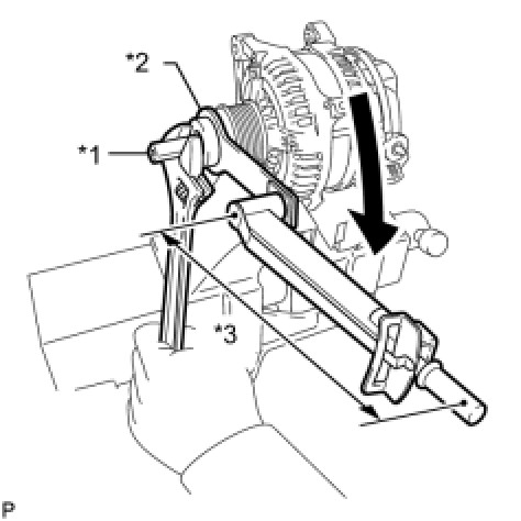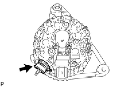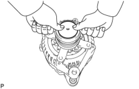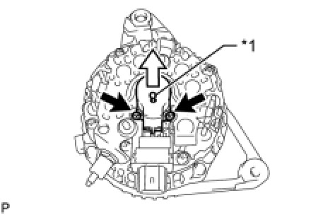 (a) While pushing the 2 brushes into the generator brush holder, insert a 1.0 mm (0.0394 in.) pin into the generator brush holder.
