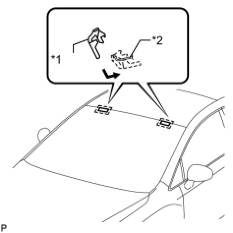 (b) Install the 2 new No. 2 windshield glass stoppers onto the windshield glass, as shown in the illustration.