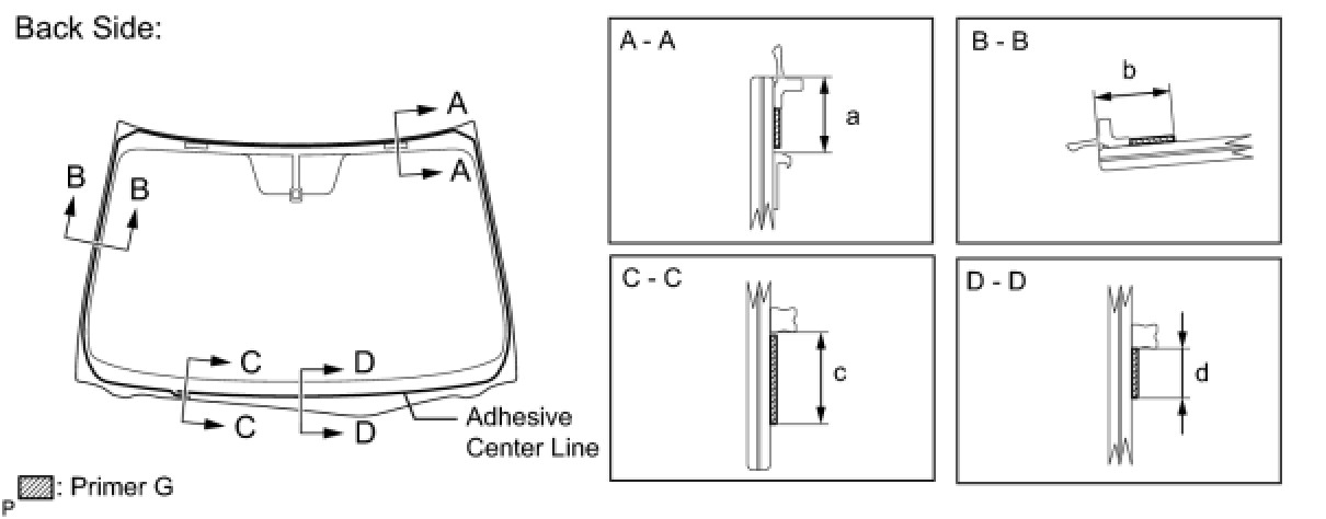 (a) Using a brush or a sponge, coat the application area of the windshield glass adhesive dam with Primer G.