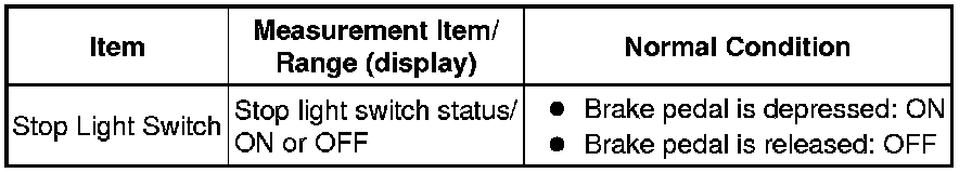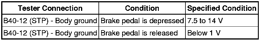 (d) Measure the voltage according to the value(s) in the table below when the brake pedal is depressed and released.