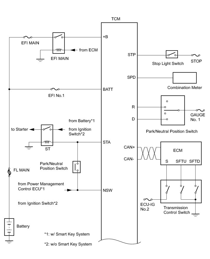 (a) The Electronic Controlled Automatic Transaxle (ECT) is an automatic transaxle that has its shift timing electronically controlled by the Transmission Control Module (TCM). The TCM detects electrical signals that indicate engine and driving conditions, and controls the shift point, based on driver's habits and road conditions. As a result, fuel efficiency and transaxle performance are improved.