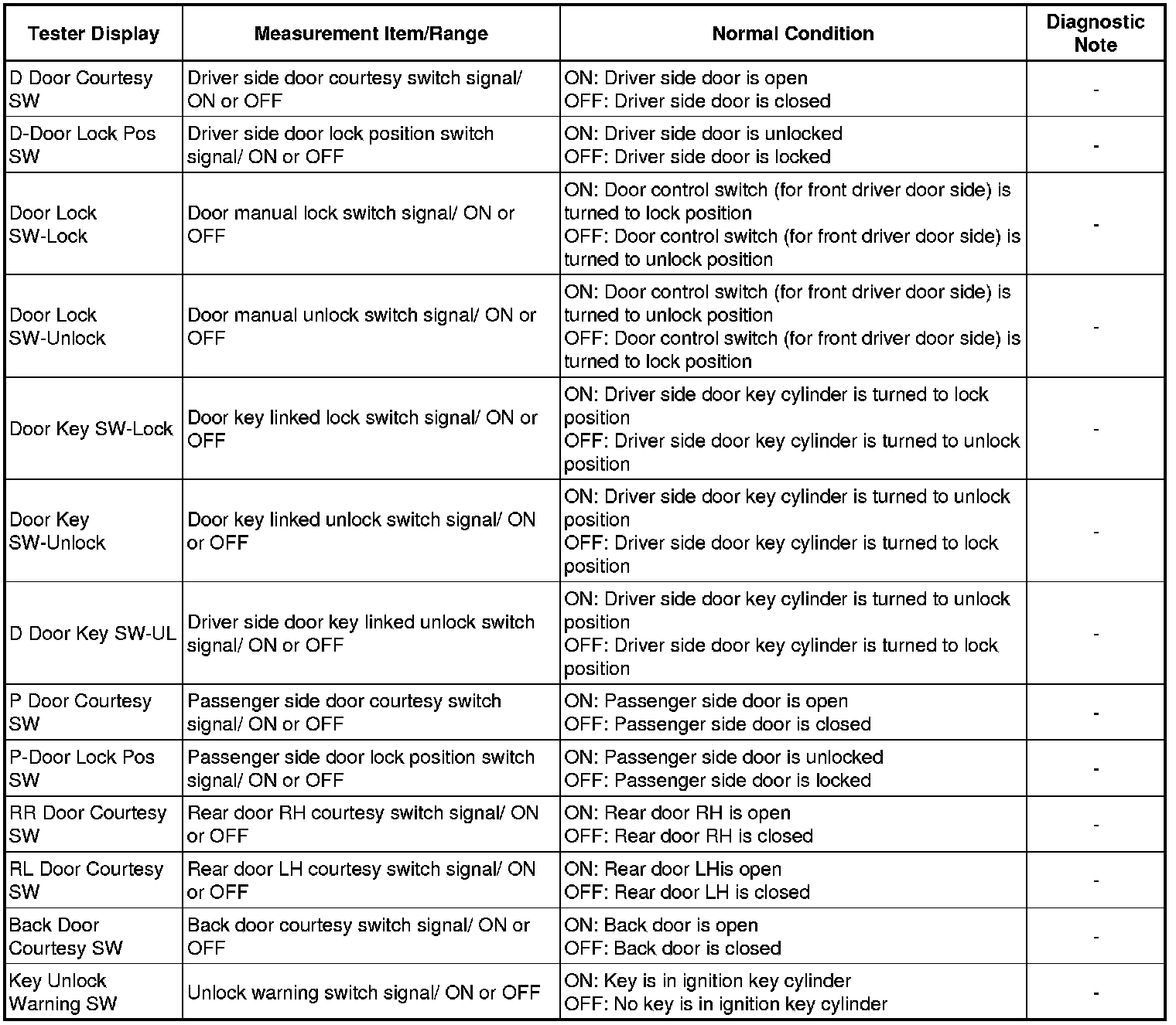 DOOR LOCK: POWER DOOR LOCK CONTROL SYSTEM: DATA LIST / ACTIVE TEST