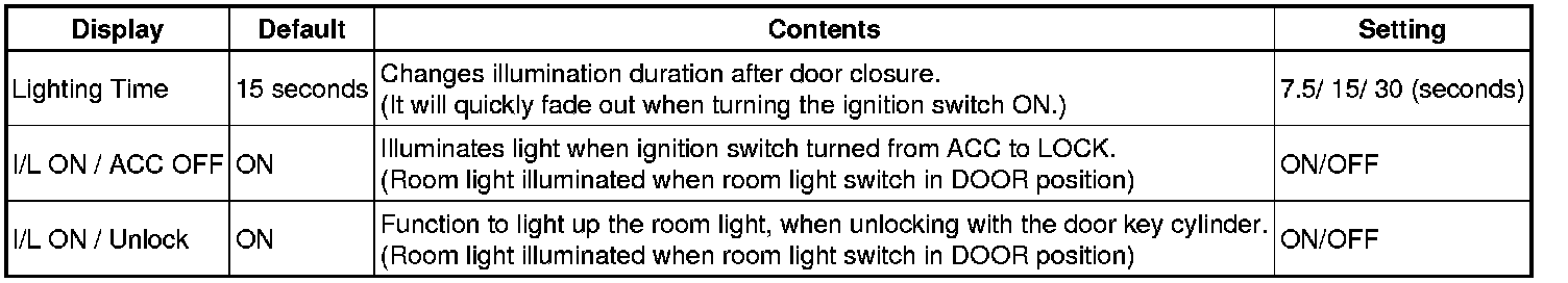 (e) Select the setting by referring to the table below.