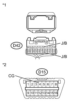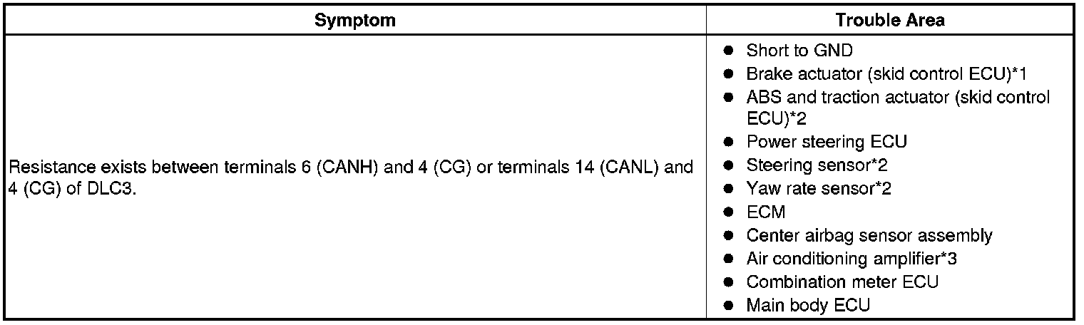There may be a short circuit between the CAN bus line and GND when there is resistance between terminals 6 (CANH) and 4 (CG) or terminals 14 (CANL) and 4 (CG) of the DLC3.