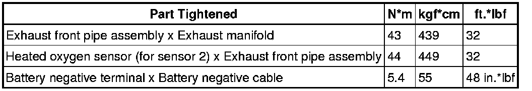 SERVICE SPECIFICATIONS: 1NZ-FE EXHAUST: TORQUE SPECIFICATIONS