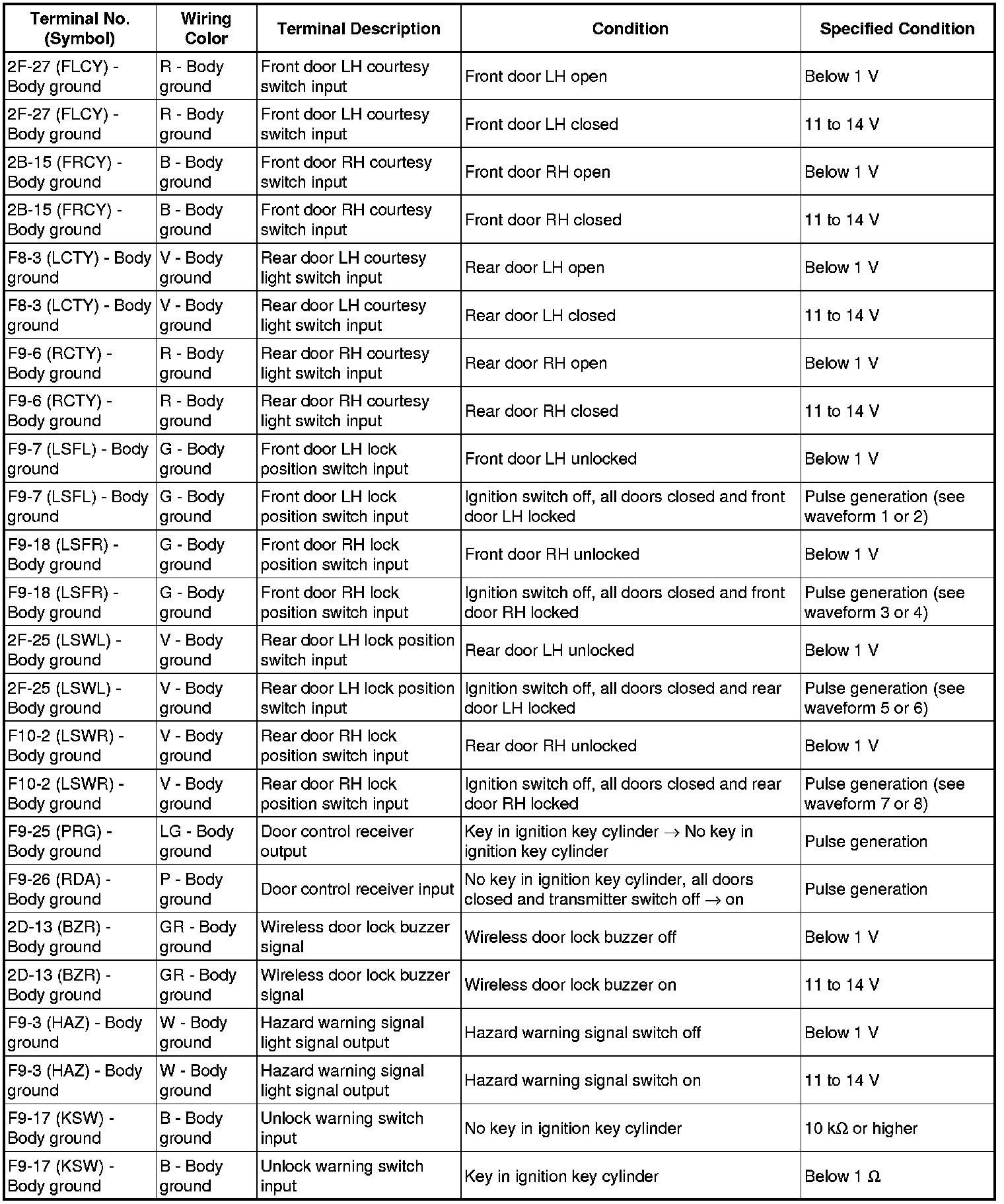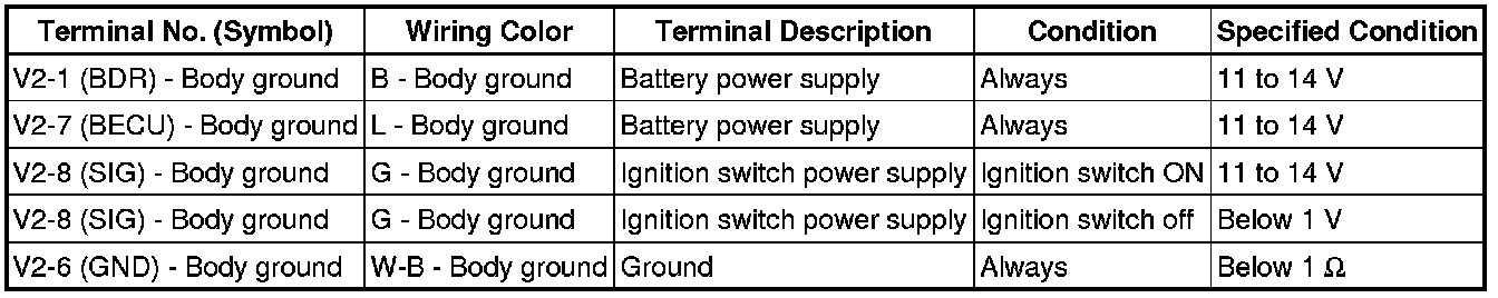 DOOR LOCK: WIRELESS DOOR LOCK CONTROL SYSTEM (w/o Smart Key System): TERMINALS OF ECU