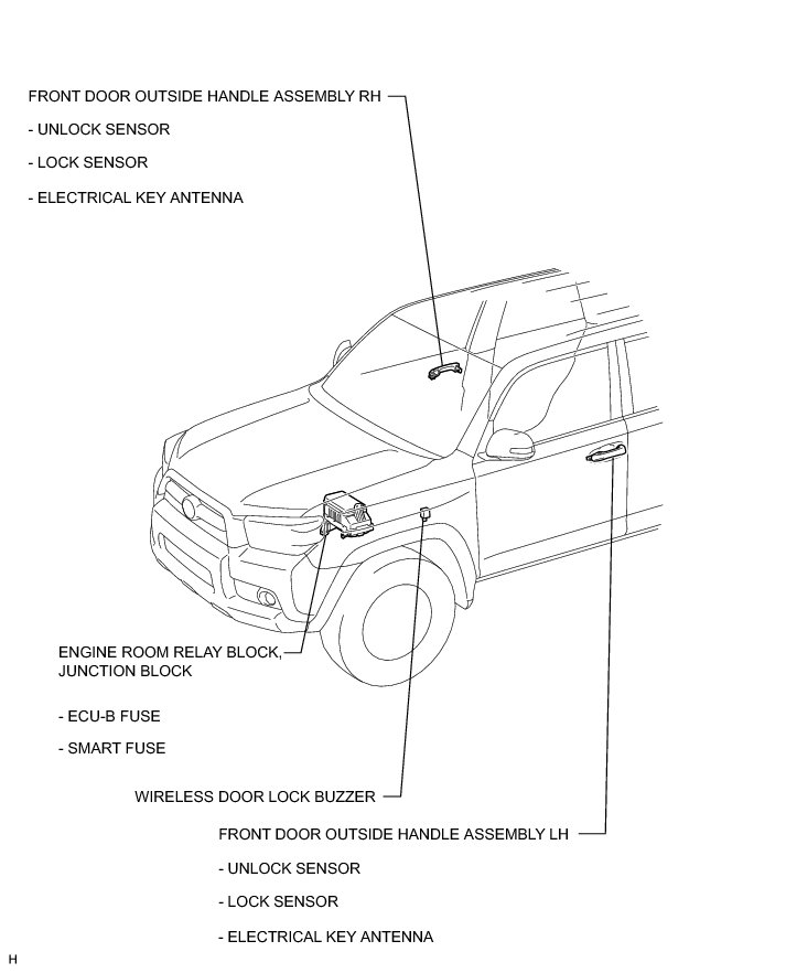 THEFT DETERRENT / KEYLESS ENTRY: SMART KEY SYSTEM (for Entry Function): PARTS LOCATION