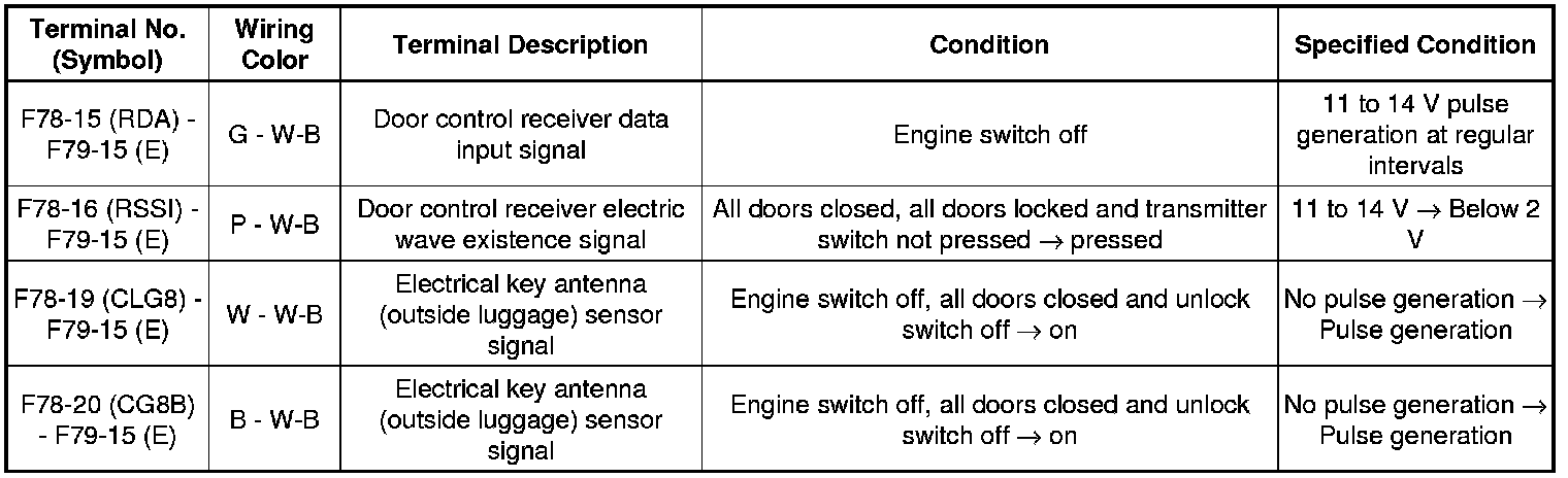 THEFT DETERRENT / KEYLESS ENTRY: SMART KEY SYSTEM (for Entry Function): TERMINALS OF ECU