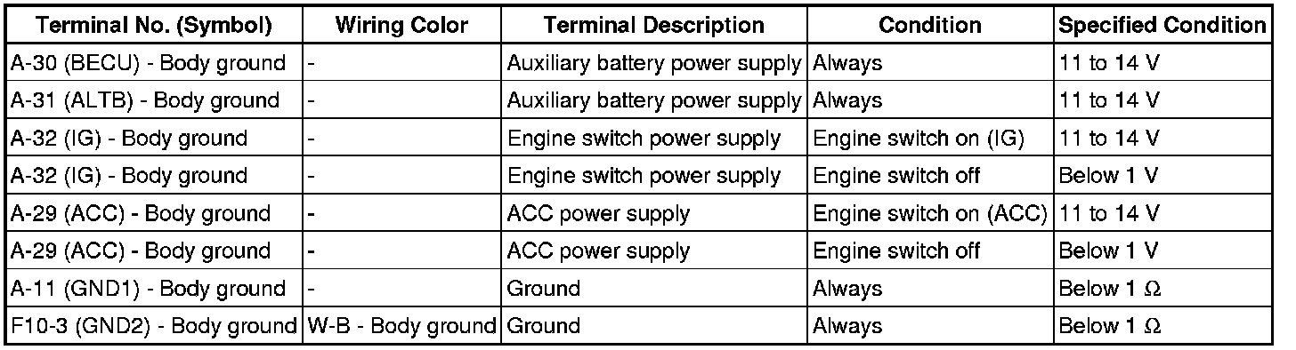 If the result is not as specified, the main body ECU or driver side junction block assembly may have a malfunction.