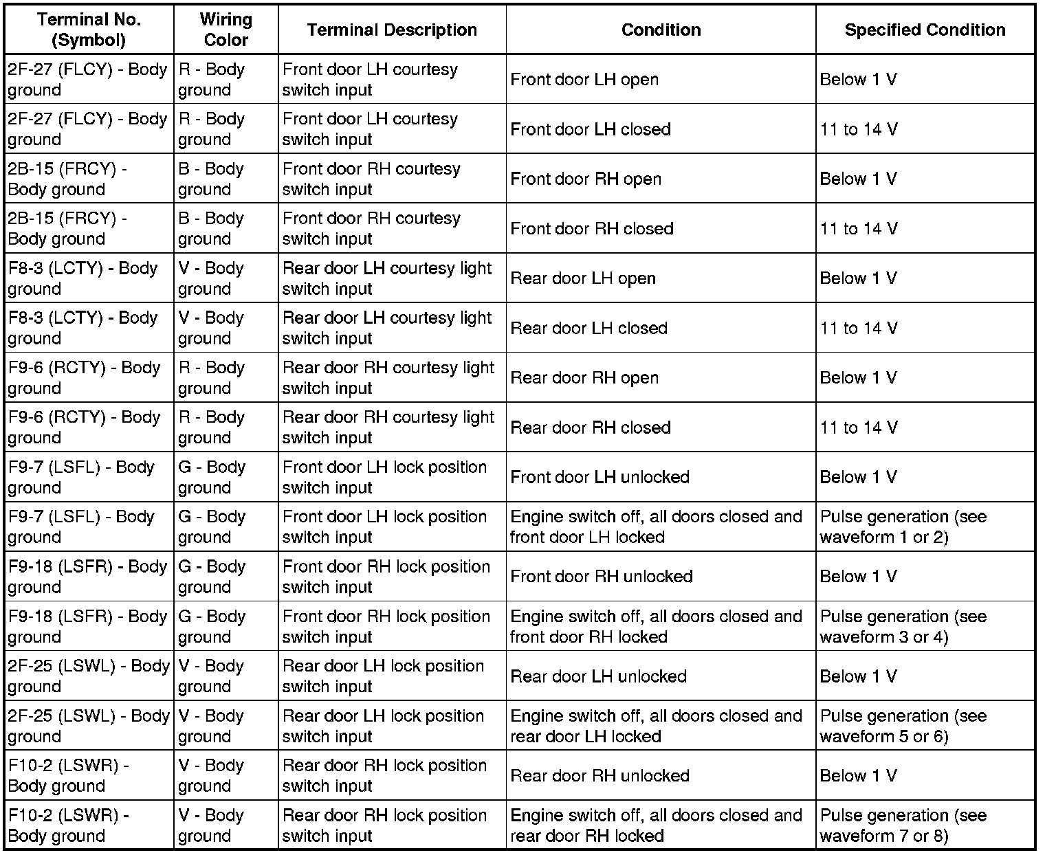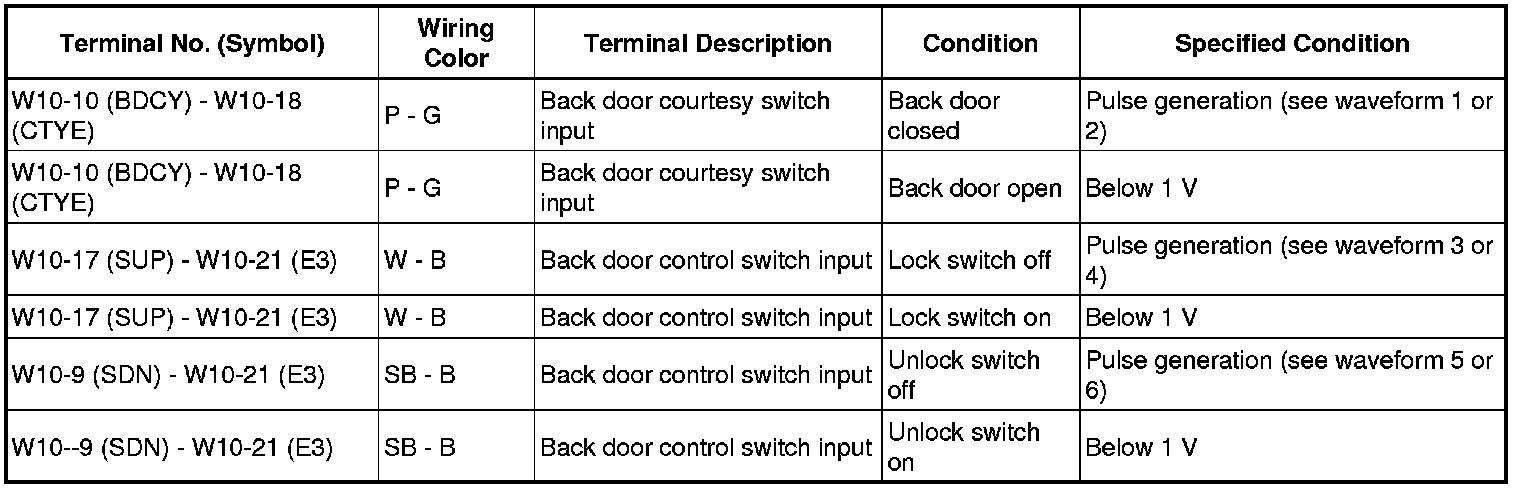 If the result is not as specified, the multiplex network door ECU (back door P/W) may have a malfunction.