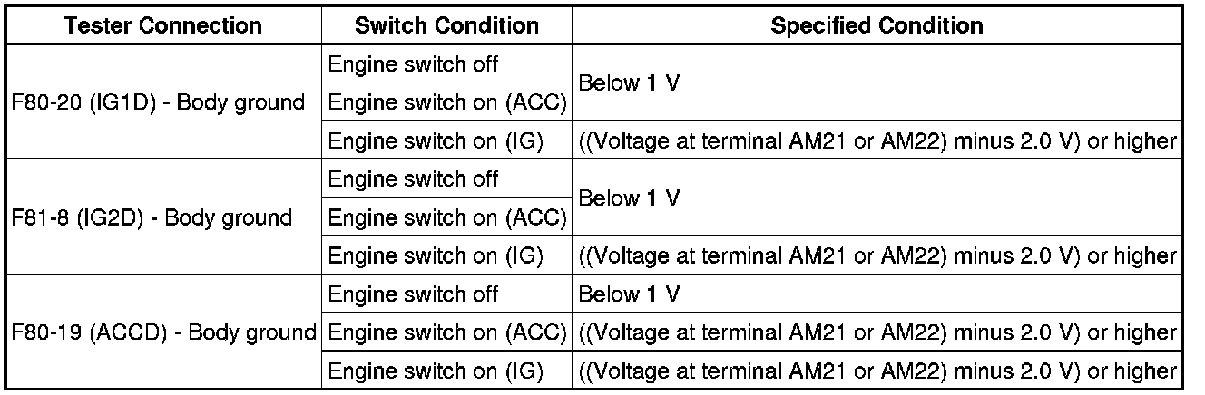 (a) Check that the power source mode changes to on (ACC) and on (IG) when operating the engine switch.