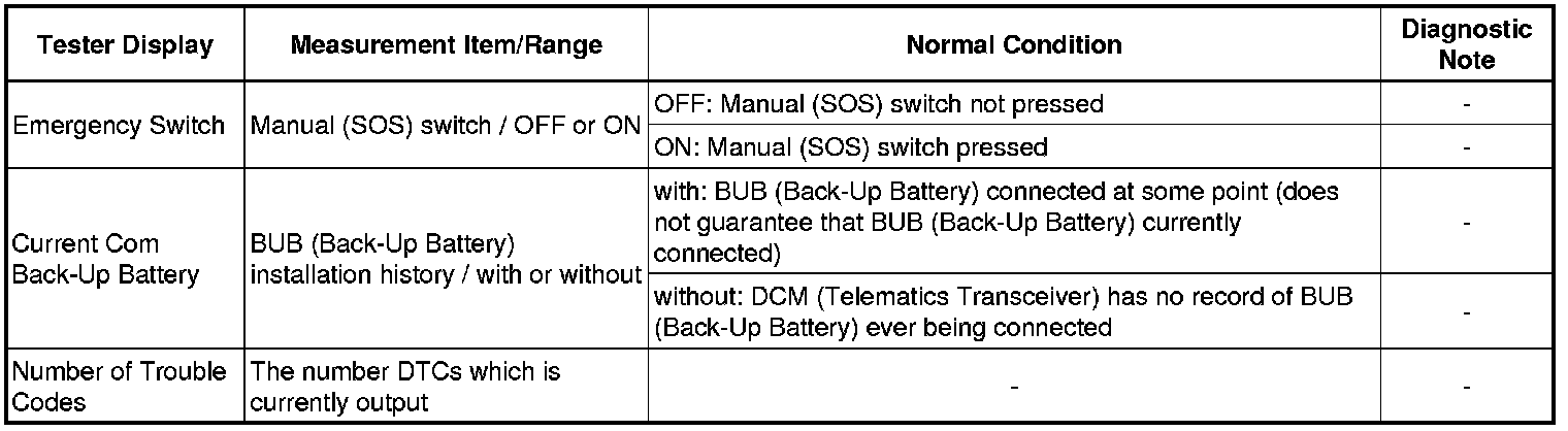 CELLULAR COMMUNICATION: SAFETY CONNECT SYSTEM: DATA LIST / ACTIVE TEST