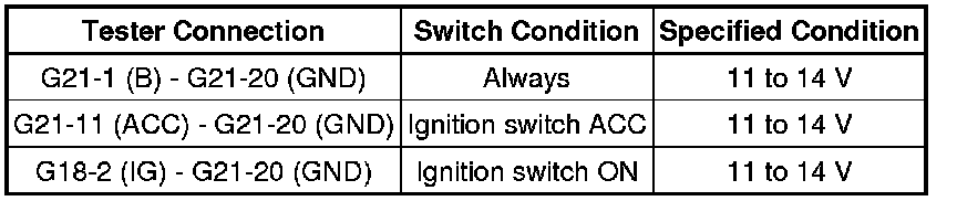 Inspect the fuses for circuits related to this system before performing the following inspection procedure.