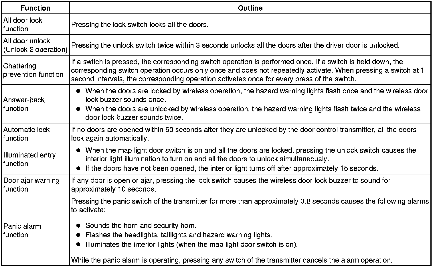 A key-integrated type transmitter is used and it contains the following 3 switches: the lock switch, unlock switch and panic switch.