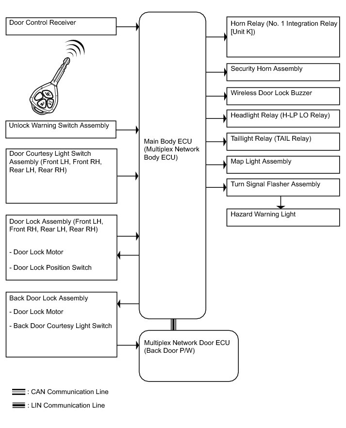 DOOR LOCK: WIRELESS DOOR LOCK CONTROL SYSTEM (w/o Smart Key System): SYSTEM DIAGRAM