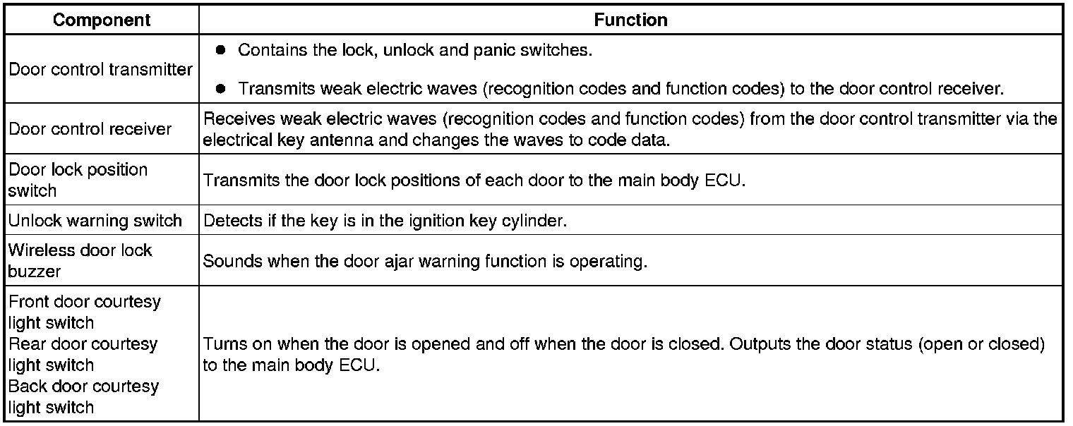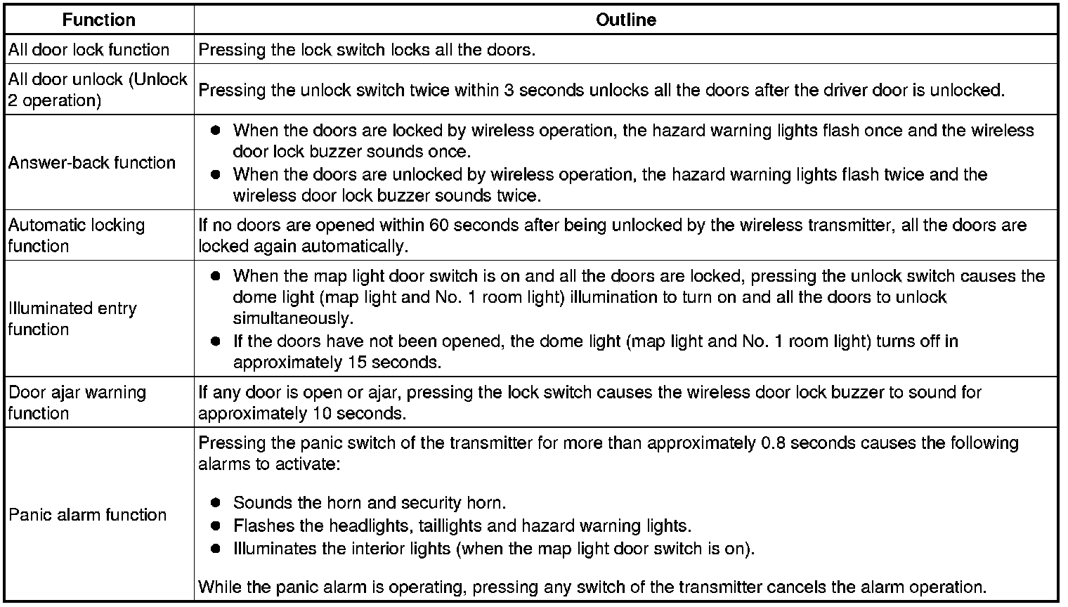 DOOR LOCK: WIRELESS DOOR LOCK CONTROL SYSTEM (w/o Smart Key System): SYSTEM DESCRIPTION