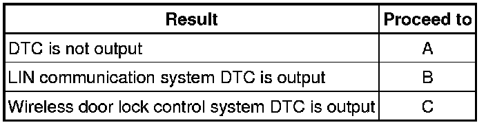 C -- Go to DIAGNOSTIC TROUBLE CODE CHART Wireless Door Lock Control System (w/o Smart Key System)