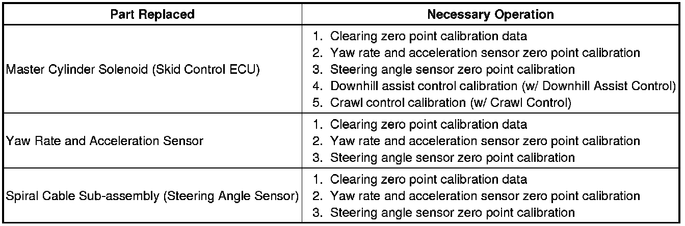 (a) After replacing VSC-related components, clearing and reading the sensor calibration data is necessary.