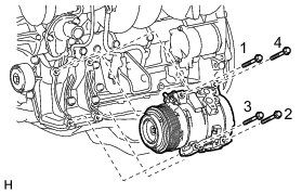 (a) Install the compressor with the 4 bolts and tighten the bolts in the order shown in the illustration.