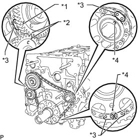 Check that the No. 1 cylinder is at TDC and that the weights of the No. 1 and No. 2 balance shafts are at the bottom.