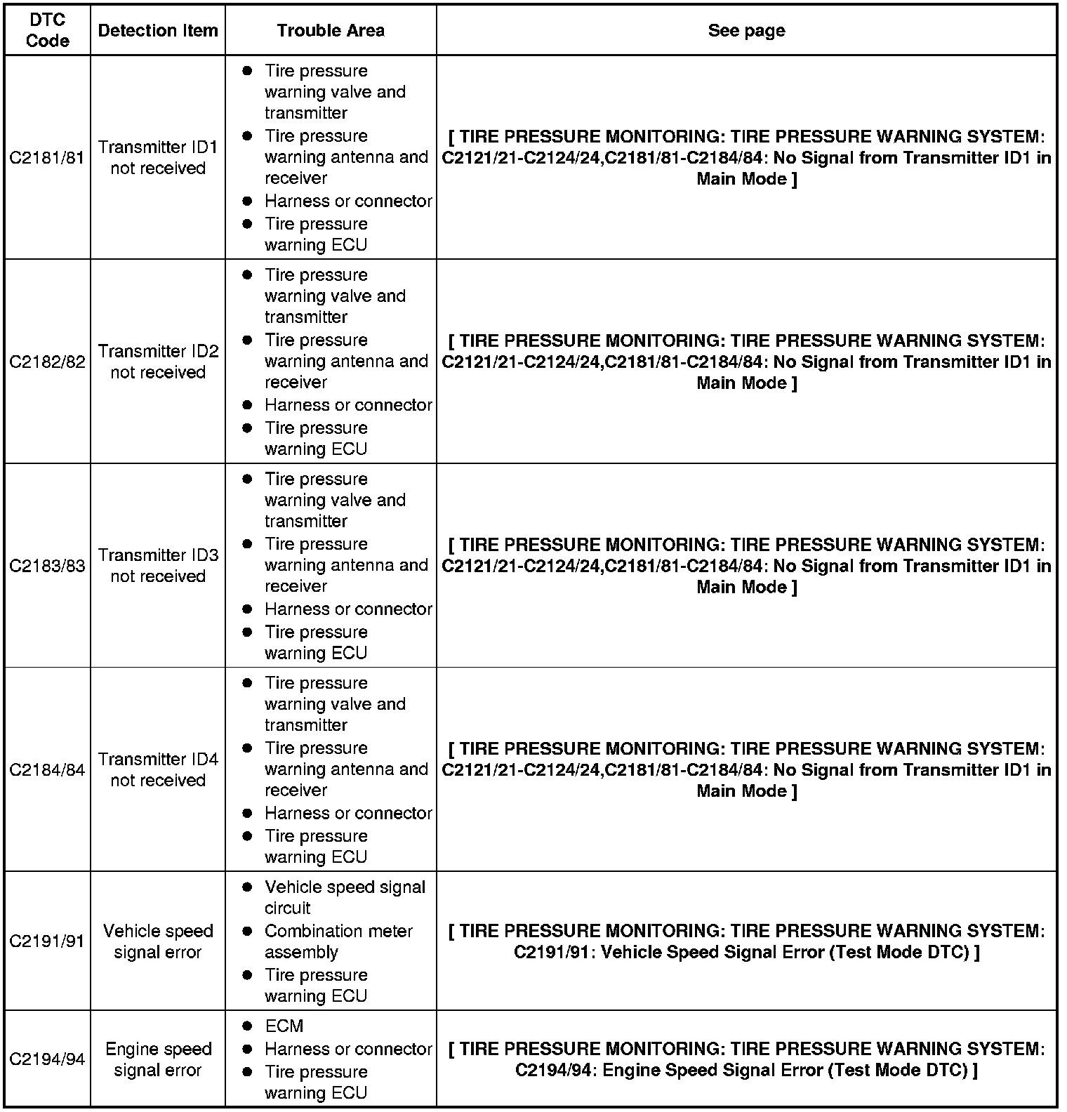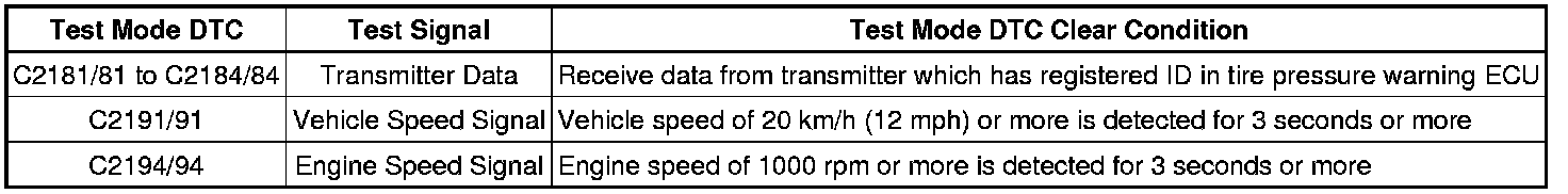 * When entering signal check mode, the tire pressure warning ECU stores all the signal check DTCs first. After completing the signal check for each inspection item, the DTCs for systems that are determined to be normal by the tire pressure warning ECU are cleared.