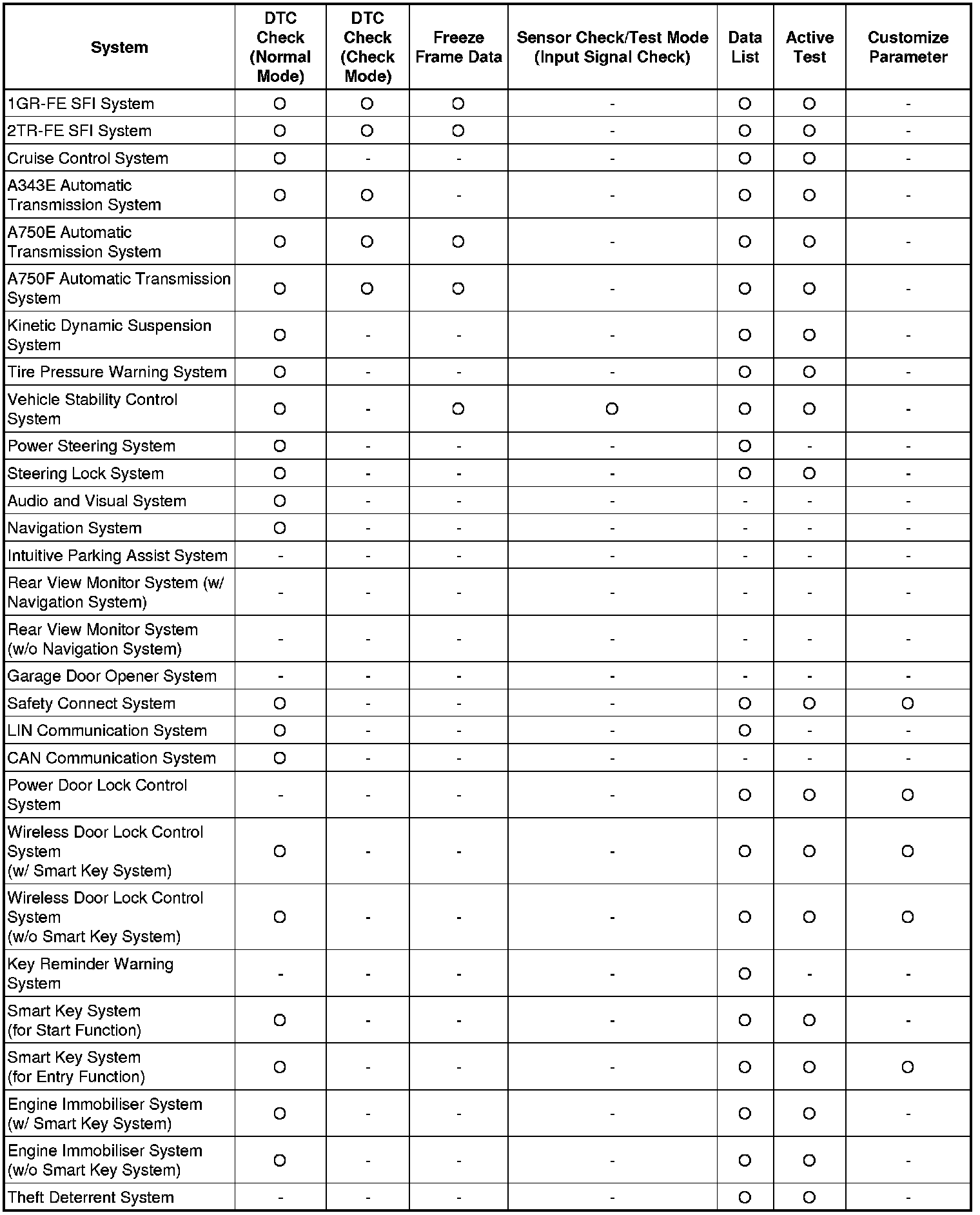 By using these functions, the problem areas can be narrowed down and troubleshooting is more effective. Diagnostic functions are incorporated in the following systems in the 4RUNNER.