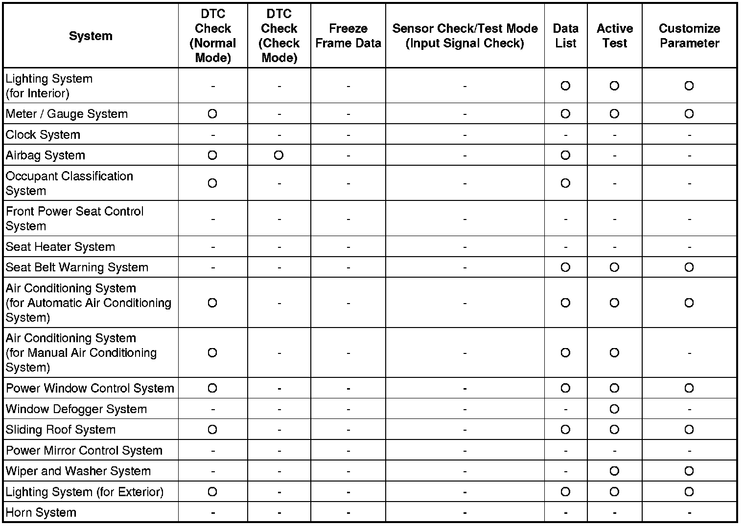 * Another function is the Input Signal Check, which checks if the signals from various switches are sent to the ECU correctly.