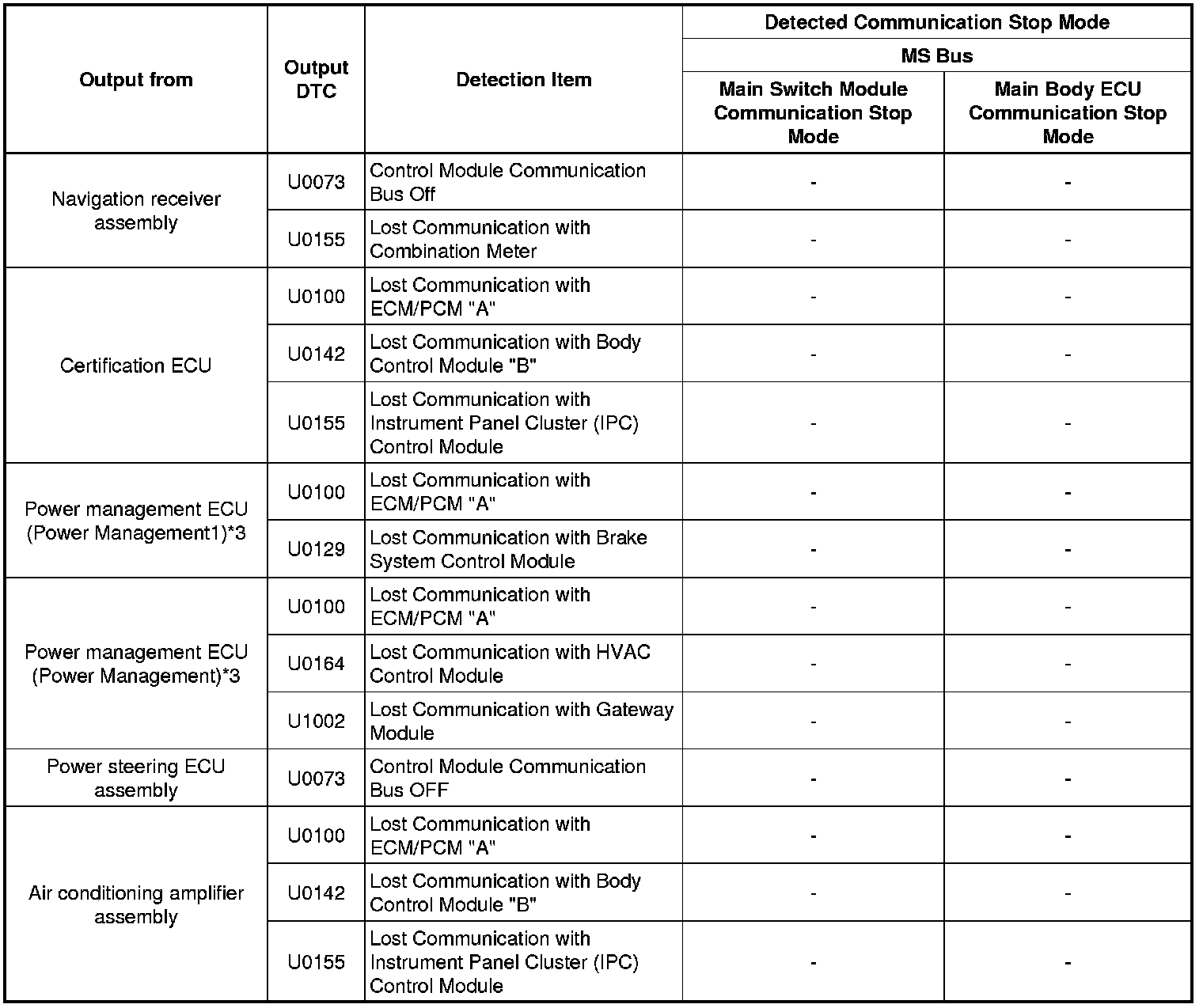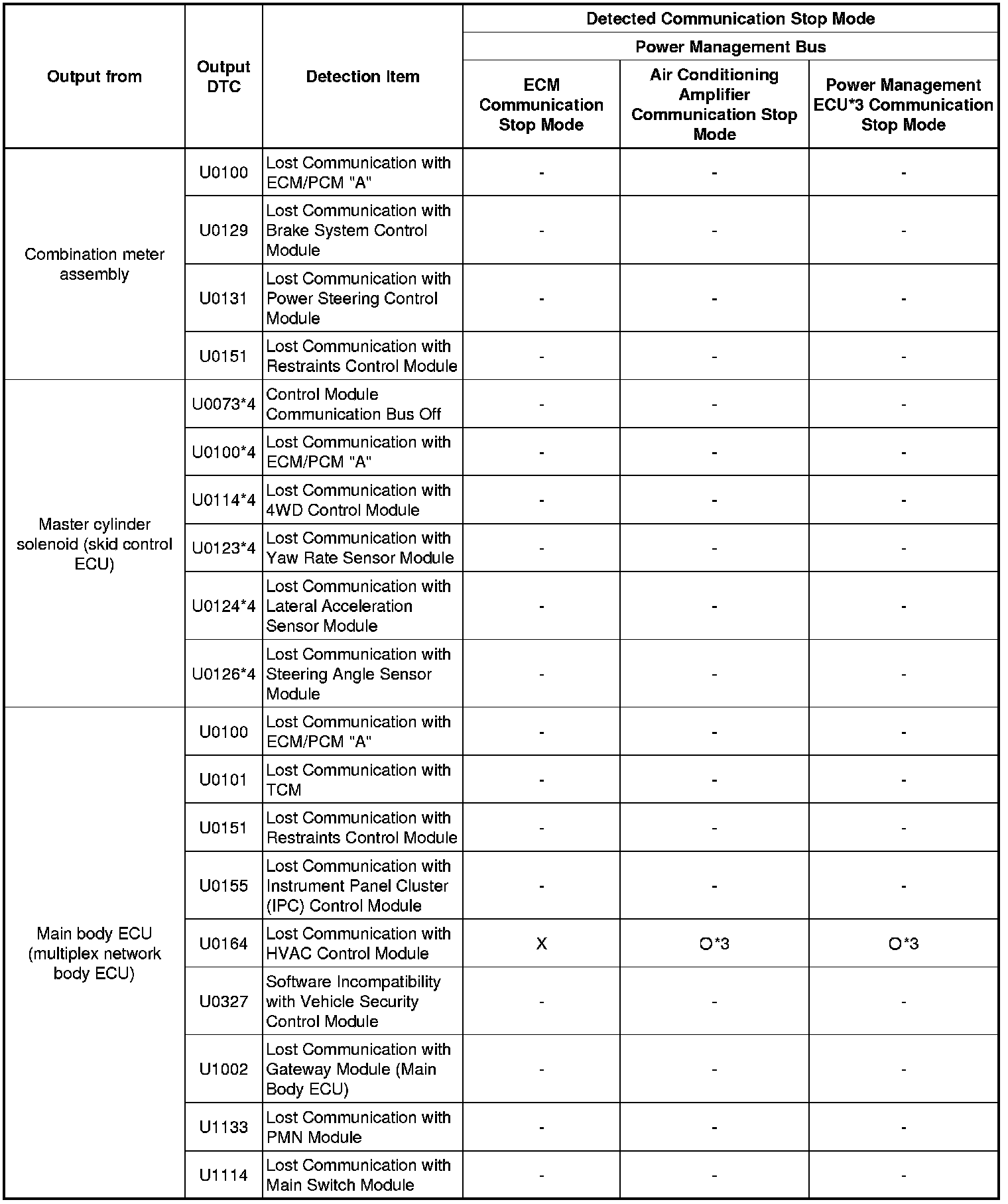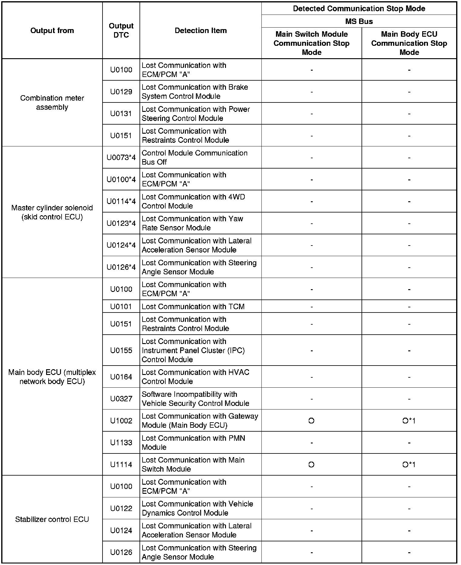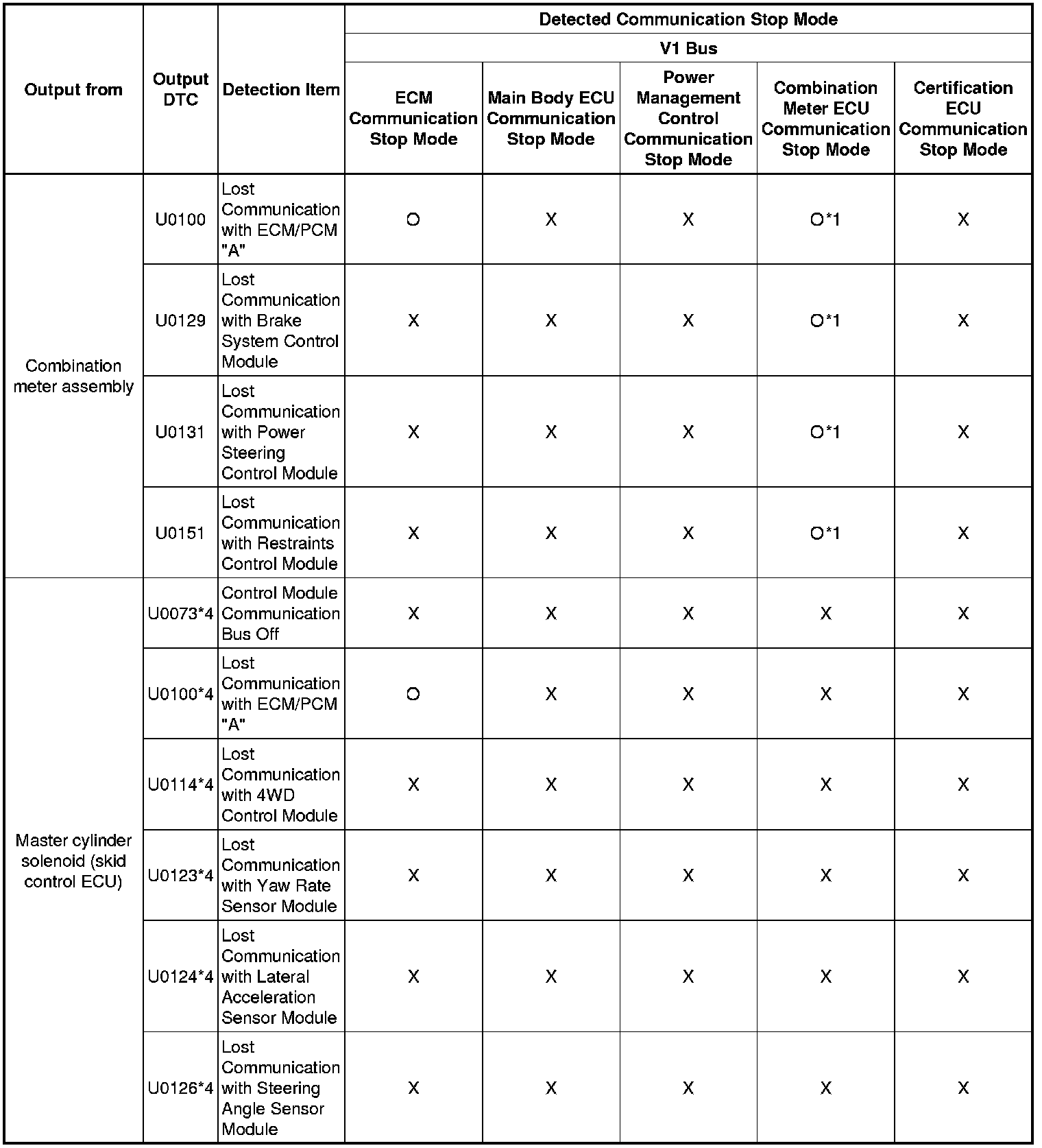 * *4: Only output while the malfunction is present and the ignition switch is ON.