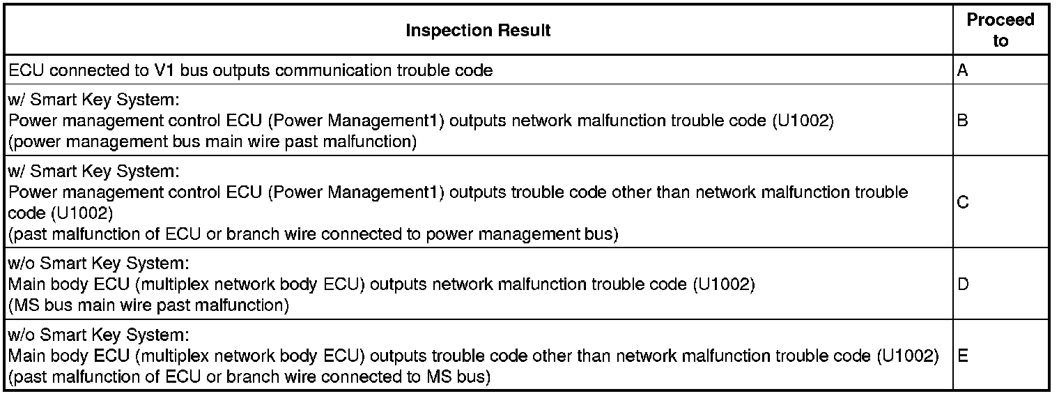 10. CHECK DTC COMBINATION TABLE (V1 BUS BRANCH WIRE OPEN, PAST COMMUNICATION STOP MALFUNCTION)