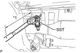 * Use a torque wrench with a fulcrum length of 30 cm (11.8 in.). If using a torque wrench with a length that is not 30 cm (11.8 in.), calculate the torque specification for the torque wrench and SST based on the "without SST" torque specification Service Precautions.