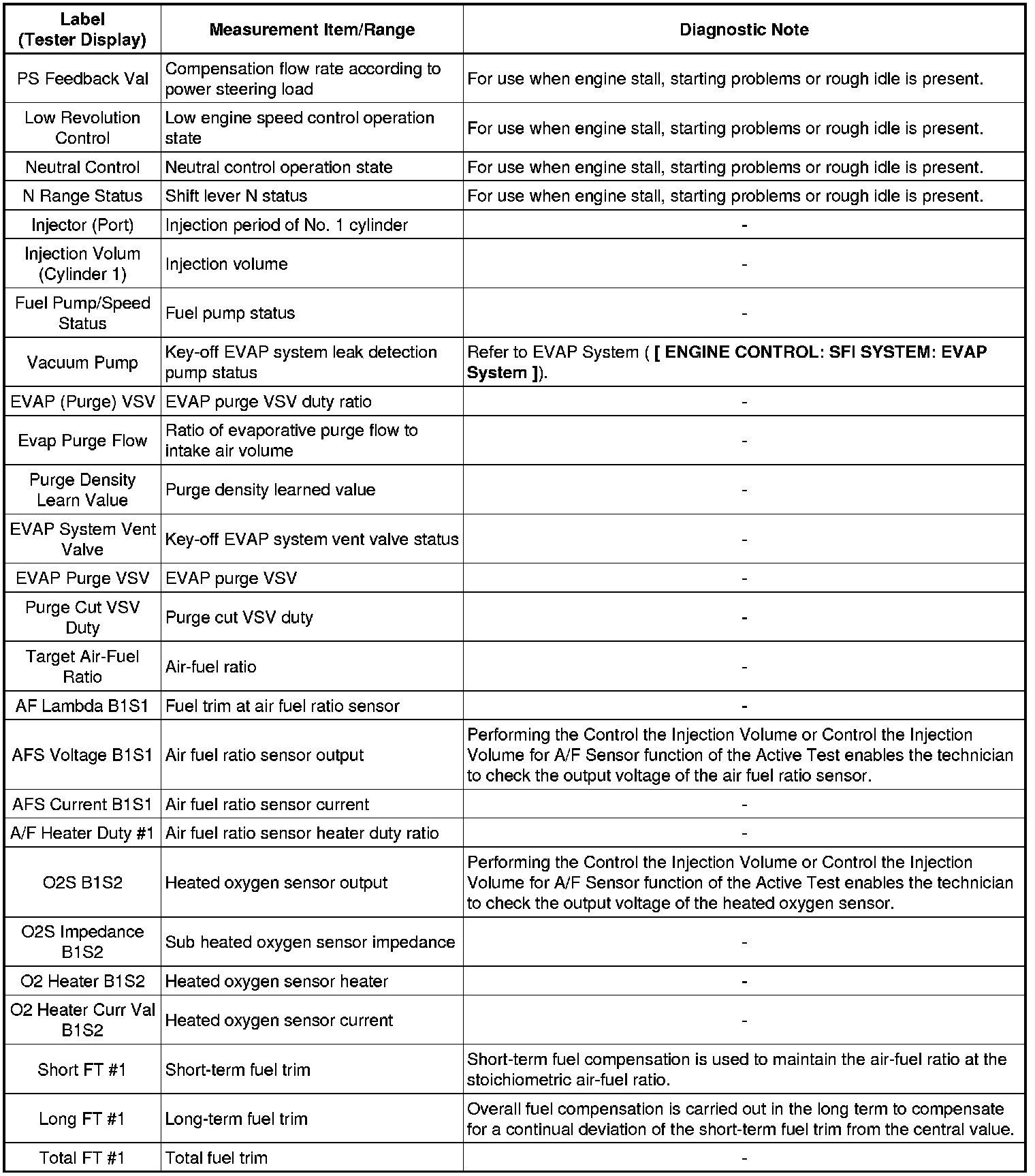 2TR-FE ENGINE CONTROL: SFI SYSTEM: FREEZE FRAME DATA