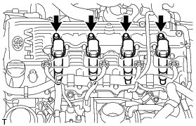 (a) Using a 16 mm spark plug wrench, remove the 4 spark plugs.