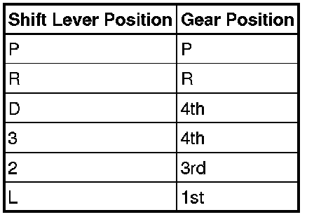 (b) Drive the vehicle with the transmission wire disconnected. Move the shift lever to each position to check whether the gear position changes as shown in the table below.