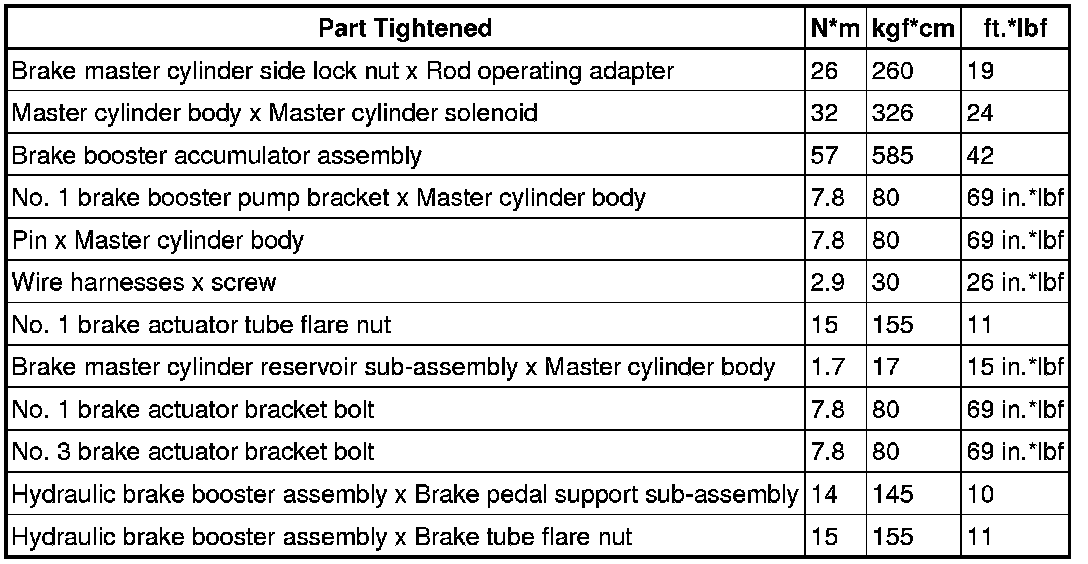 SPECIFICATIONS: BRAKE SYSTEM (OTHER): TORQUE SPECIFICATIONS